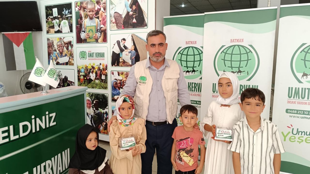 Batman’da Züleyha, Ali İmran ve Ahmet Asaf Taş kardeşler ile Şüheda ve Aksa Karadaş kardeşler, kumbaralarında biriktirdikleri harçlıklarını yetim ve muhtaç ailelere ulaştırılmak üzere Umut Kervanı Batman Derneği Yetkilisi Rıdvan Üzümcü’ye teslim etti.