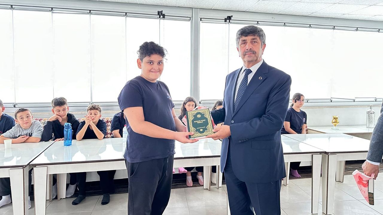 Öğrencilere ikramlarda bulunuldu ve mealli Kur’an-ı Kerim hediye edildi.