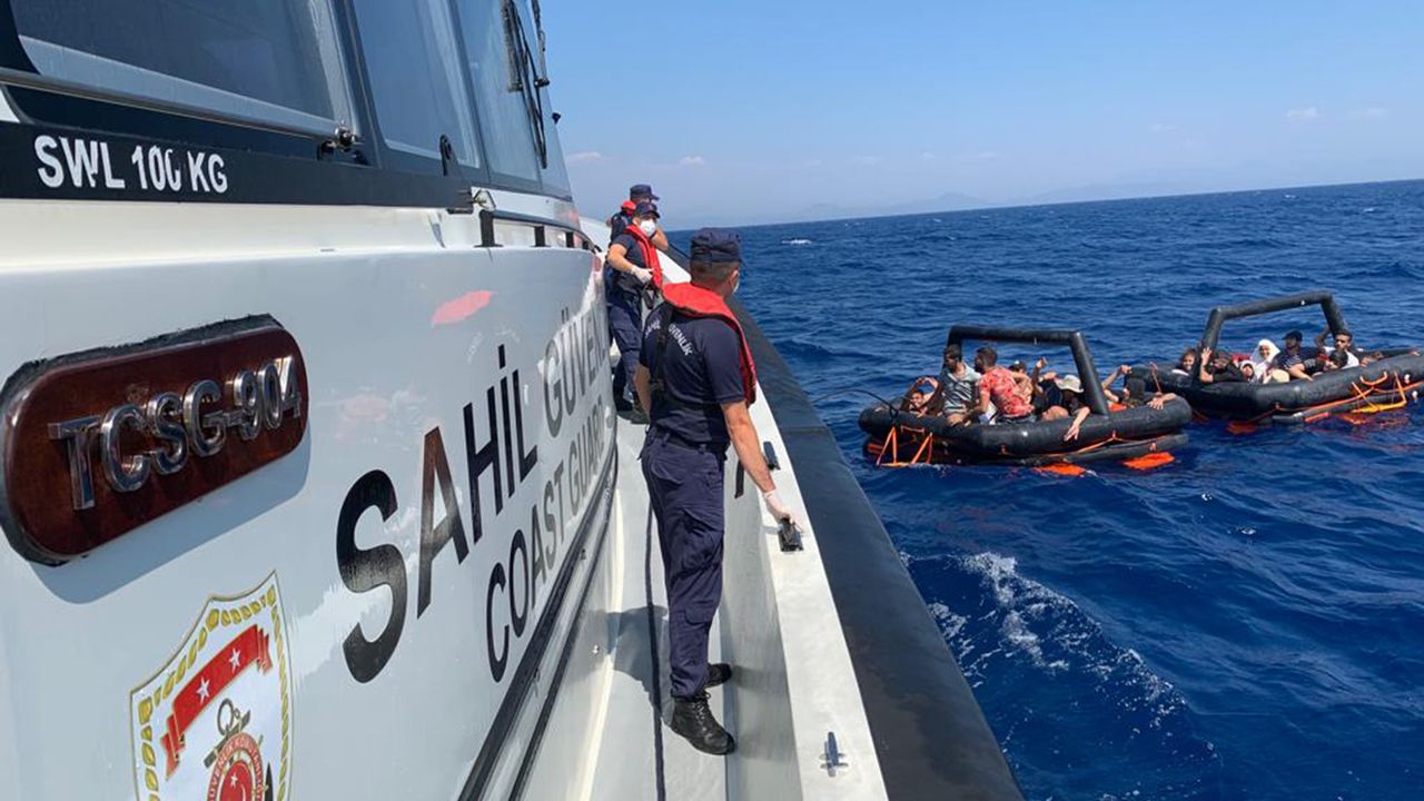 Sahil Güvenlik Komutanlığı ekipleri, Marmaris açıklarında Yunanistan unsurlarınca Türkiye kara sularına itilen can salındaki 5'i çocuk 22 düzensiz göçmeni kurtardı.
