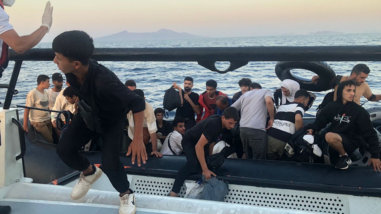 Datça ilçesi açıklarında içerisinde düzensiz göçmenlerin olduğu lastik bot motor arızası nedeniyle sürüklendi.