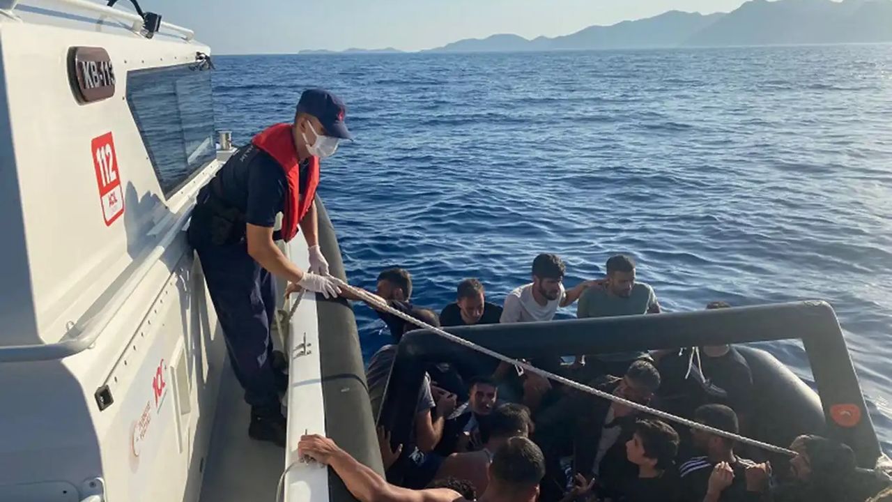 Sahil Güvenlik Komutanlığı ekipleri, ilçe açıklarında yelkenli teknede 10'u çocuk 38 düzensiz göçmeni yakaladı.