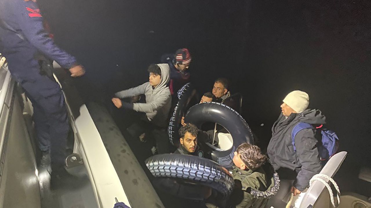 Sahil Güvenlik Komutanlığı ekipleri, ilçe açıklarındaki Karaada'da 8'i çocuk 23 düzensiz göçmeni yakaladı.