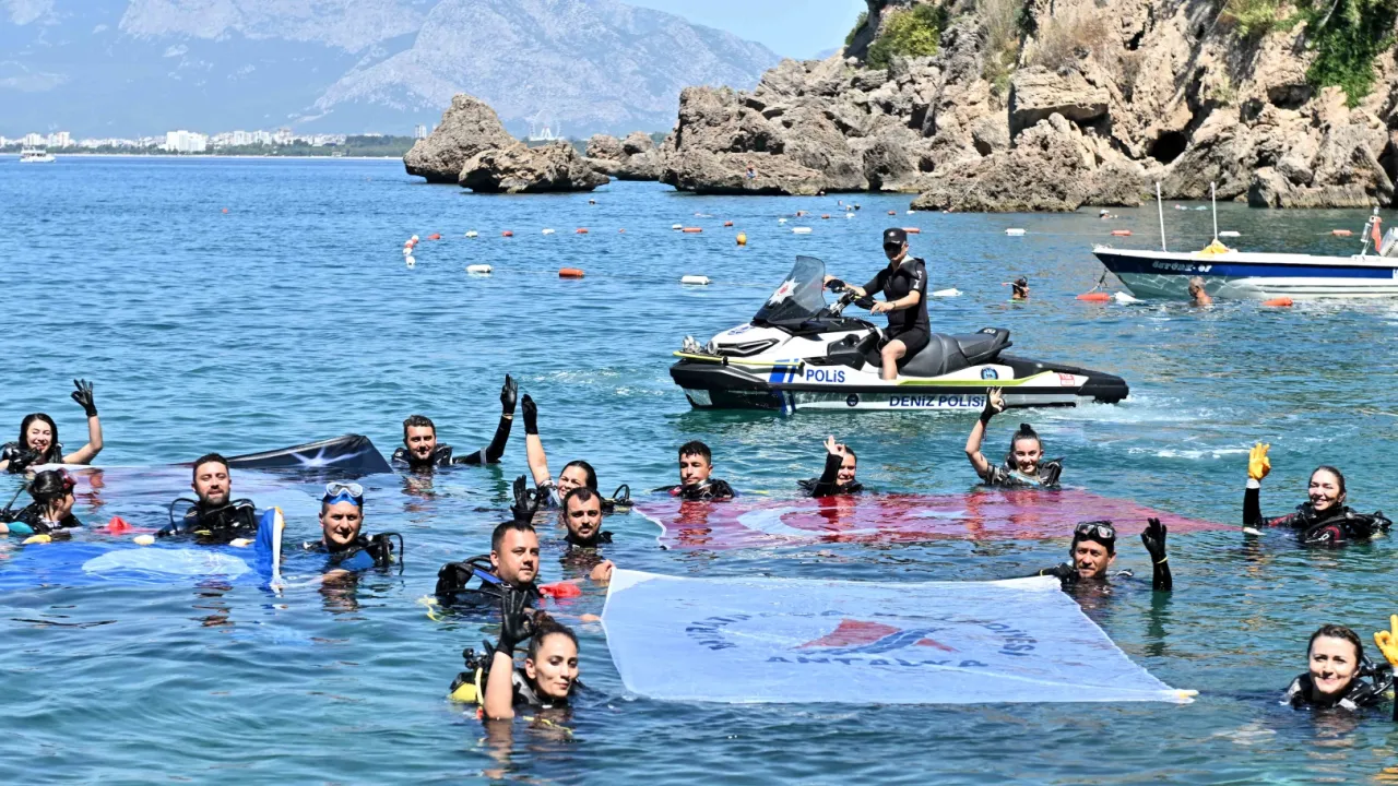 Fotoğraf çekimi ile sonlanan törenin ardından ise etkinlik deniz dibi temizliğiyle devam etti. Muratpaşa Belediyesi dalgıçları denizin derinliklerine dalmadan önce Mustafa Kemal Atatürk bayrağı Türk bayrağı, Mavi Bayrak ve Muratpaşa Belediyesi bayraklarını deniz üstünde açarak unutulmaz bir kareyle anı ölümsüzleştirdi. Fotoğraf çekiminin ardından dalgıçlar, özel dalış kıyafeti ve oksijen tüpleriyle denizin altına indi. Yaklaşık 45 dakikalık dalışın ardından deniz zemini ve kaya diplerine yerleşen çok sayıda atık dalgıçlar tarafından karaya çıkarıldı.