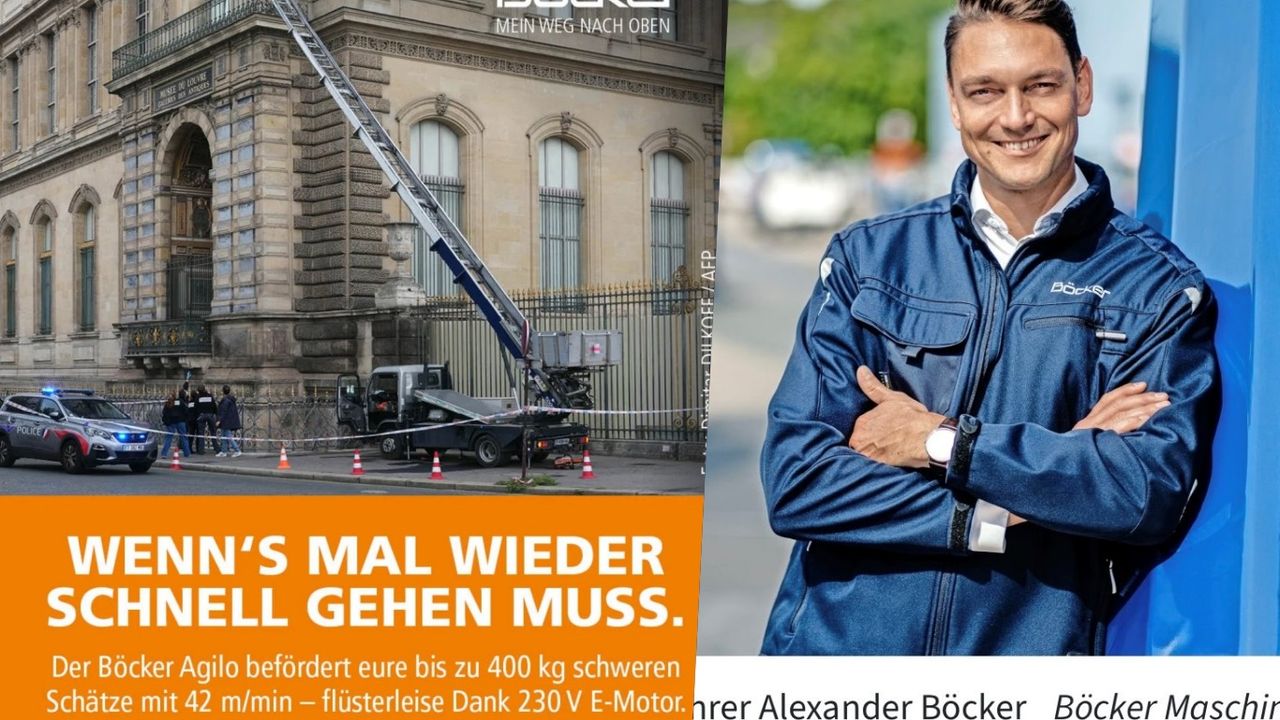 Kuzey Ren-Vestfalya merkezli aile şirketi Böcker, istemeden de olsa tarihin en dikkat çekici soygunlarından birine adının karışmasıyla gündeme geldi. Yetkililerin aktardığına göre, dört kişiden oluşan soygun çetesi pazar sabahı yerel saatle 09.30 civarında Louvre’un önüne platformlu bir kamyon park etti, Böcker üretimi asansör yardımıyla müze terasına tırmandı ve yedi dakika içinde yaklaşık 88 milyon avro değerindeki mücevherleri çaldı.