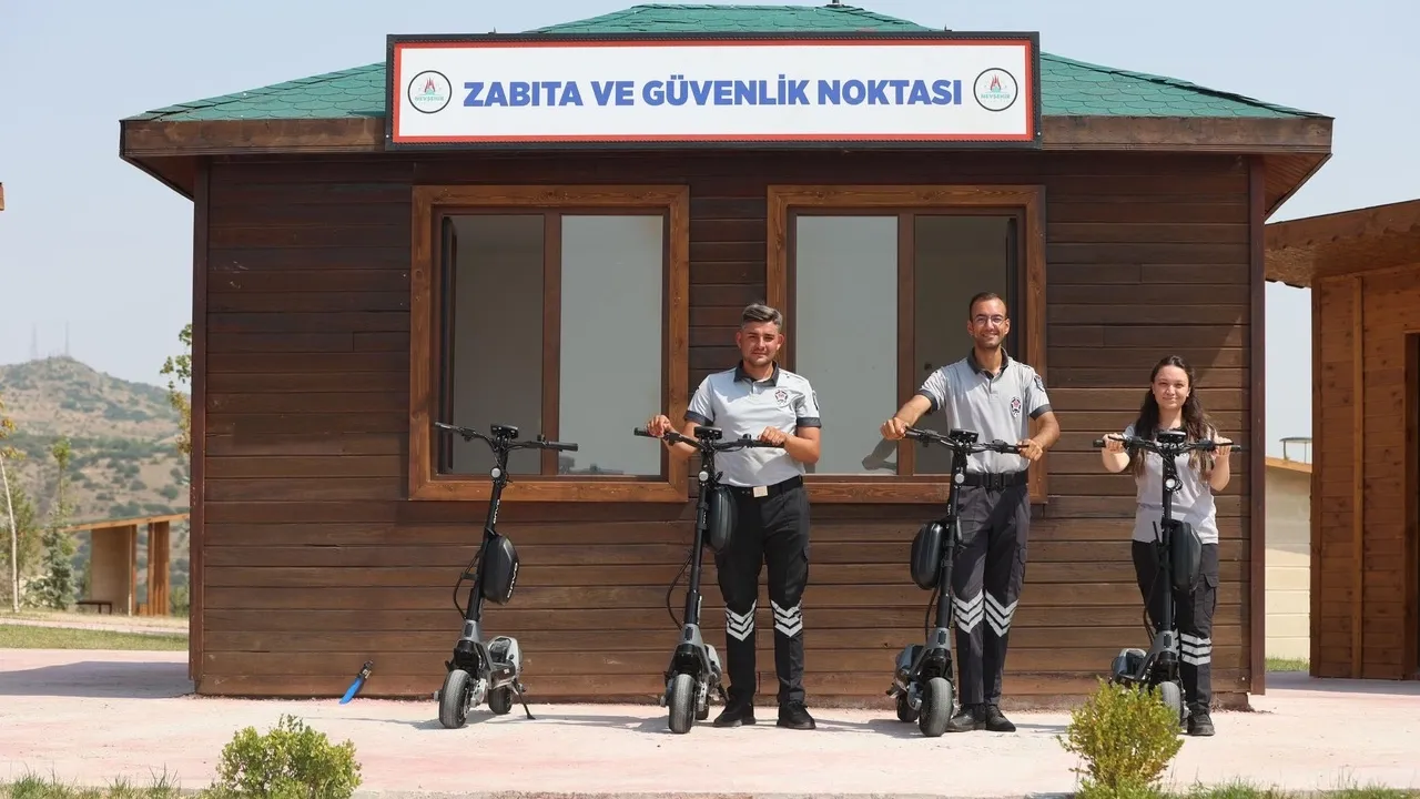 Nevşehir Belediyesi Kahveci Dağı’nda elektrikli scooterli özel güvenlik görevlileri görevlendirildi.NEVŞEHİR (İGFA) - Yeni sosyal yaşam alanı oluşturarak bölge halkına yeşil alan kazandıran Nevşehir Belediyesi, kentin vizyonunu değiştirmeye devam ediyor. Nevşehir Belediyesi tarafından Büyük Türklük Anıtı, Bungalov Evleri, sosyal donatılarla dolu alanların oluşturduğu Kahveci Dağı’nda başta çocuklar ve gençler olmak üzere bütün vatandaşlar kendini buldukları bir alana kavuştu.
