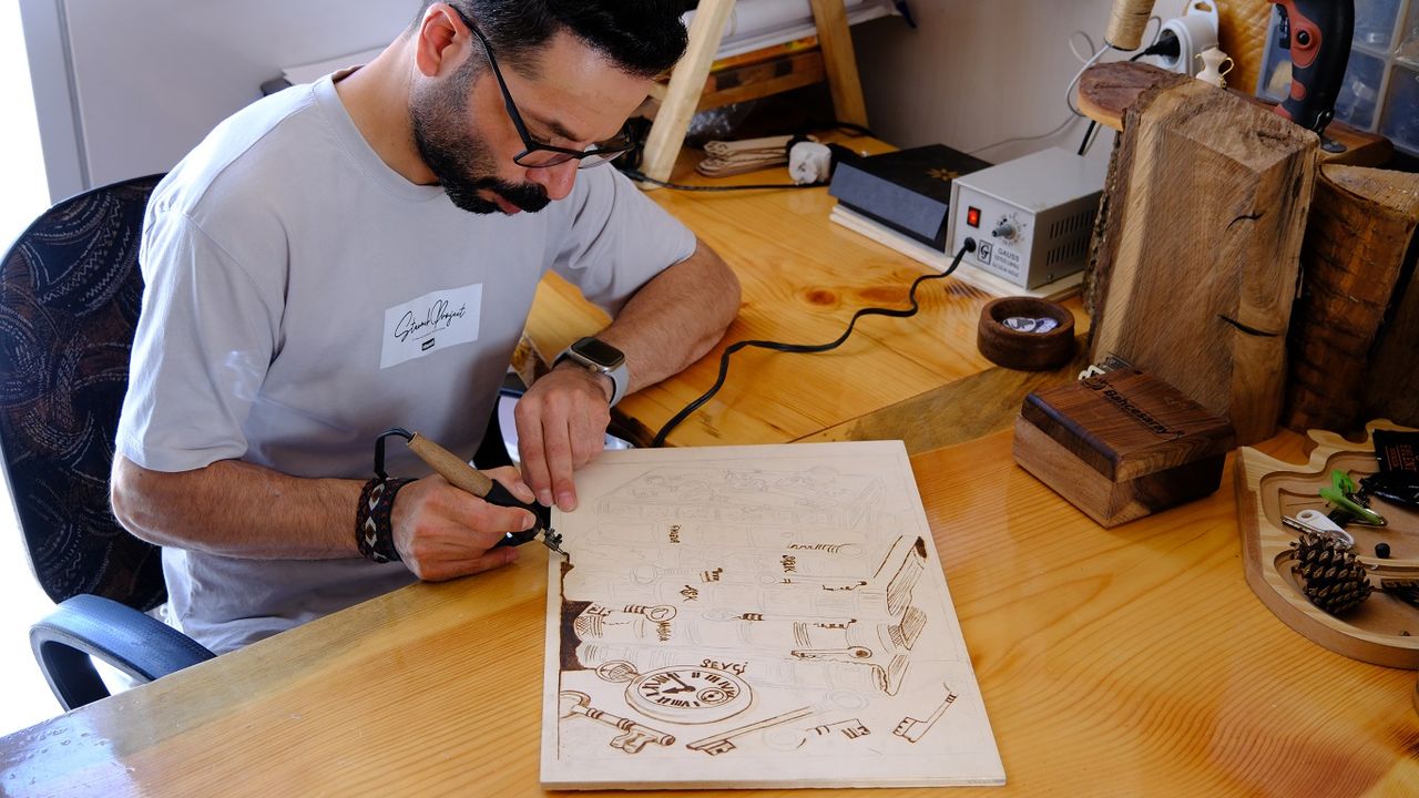 Tablo, tabak, çömlek, masa, sehpa, anahtarlık gibi onlarca ürün, ahşap oyma ve ahşap yakma sanatıyla yeniden hayat buluyor.