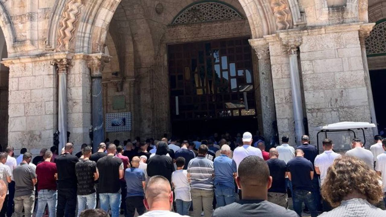 Sabah saatlerinden itibaren Kudüs, çevresindeki yerleşim yerleri ve Batı Şeria kentlerinden gelen Filistinliler, cuma namazını cami avlusunda kılmak için Mescid-i Aksa'ya akın etti.