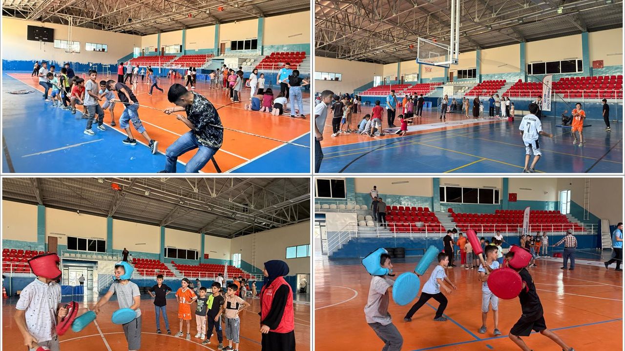 Kur'an'ı Kerim kurslarına katılan çocuk ve gençler, cami eğitimlerinin ardından spor salonlarında buluşarak dopdolu etkinliklerle yaz tatilini hem verimli hem de eğlenceli geçiriyor.
