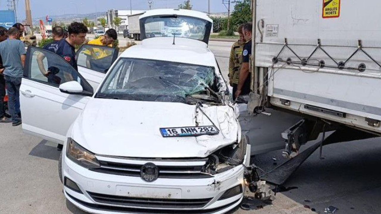 Edinilen bilgilere göre, Bursa'dan İnegöl yönüne giden Furkan P.’nin kontrolünü yitirdiği 16 ANM 282 plakalı otomobil, yolun sağındaki akaryakıt istasyonunda park halinde olan 34 JA 7602 plakalı tıra arkadan çarptı.