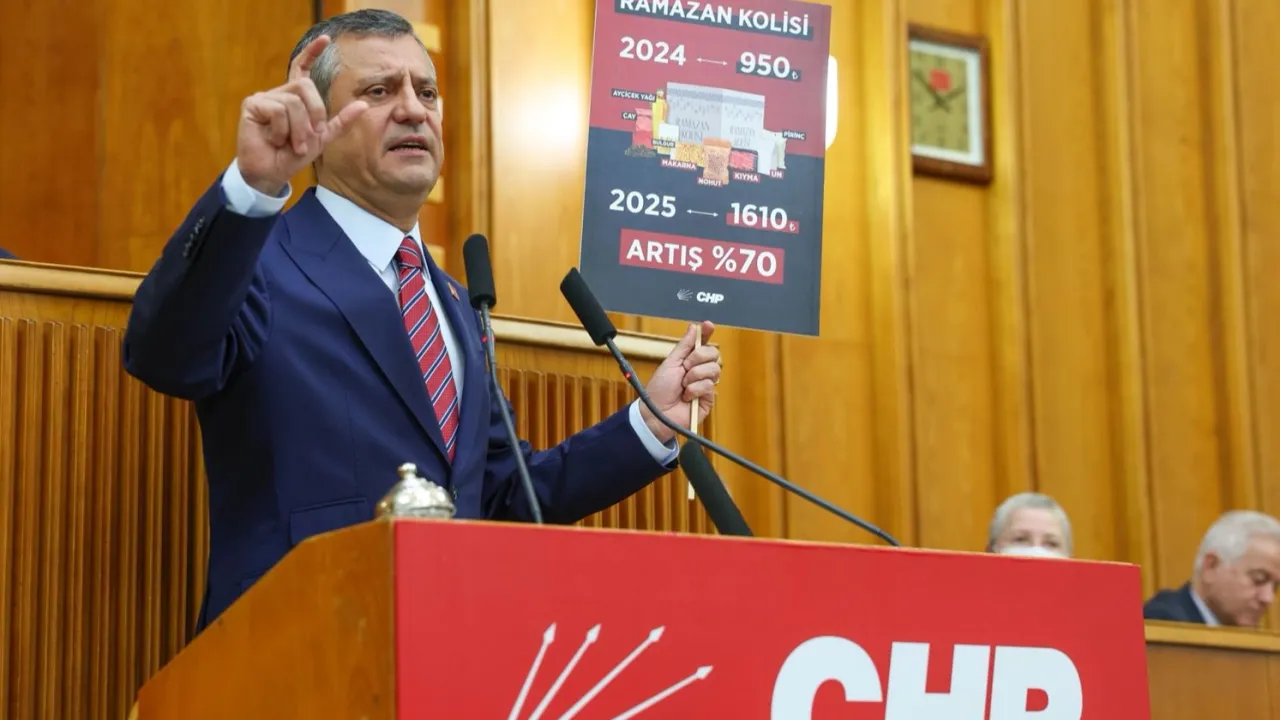 Toplantıda ekonomik gidişata yönelik değerlendirmelerde bulunan CHP Genel BaşkanI Özgür Özel, 2024 yılı ile 2025 yılı Ramazan kolilerini karşılaştırdı.