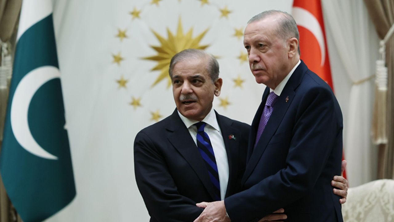 Cumhurbaşkanı Recep Tayyip Erdoğan, Pakistan Başbakanı Şahbaz Şerif ile Cumhurbaşkanlığı Külliyesinde bir araya geldi. (İLKHA)