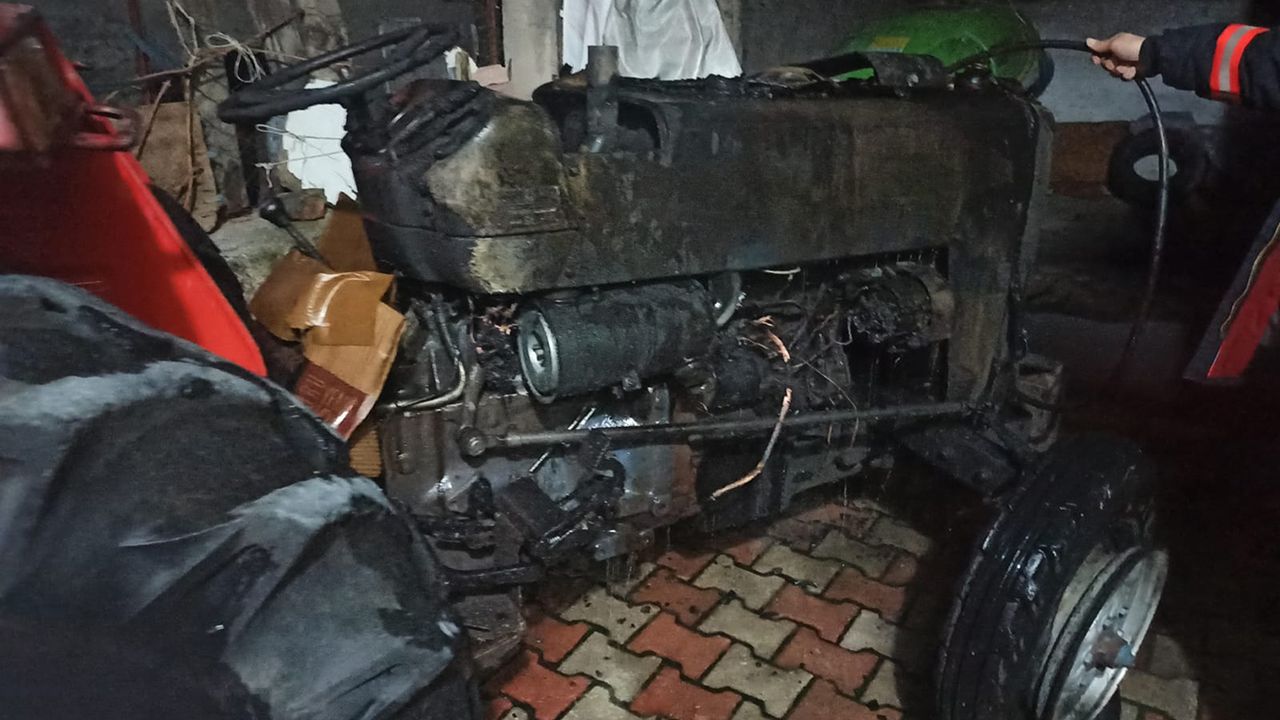 Yangın nedeniyle traktörde maddi hasar meydana geldi. (İLKHA)