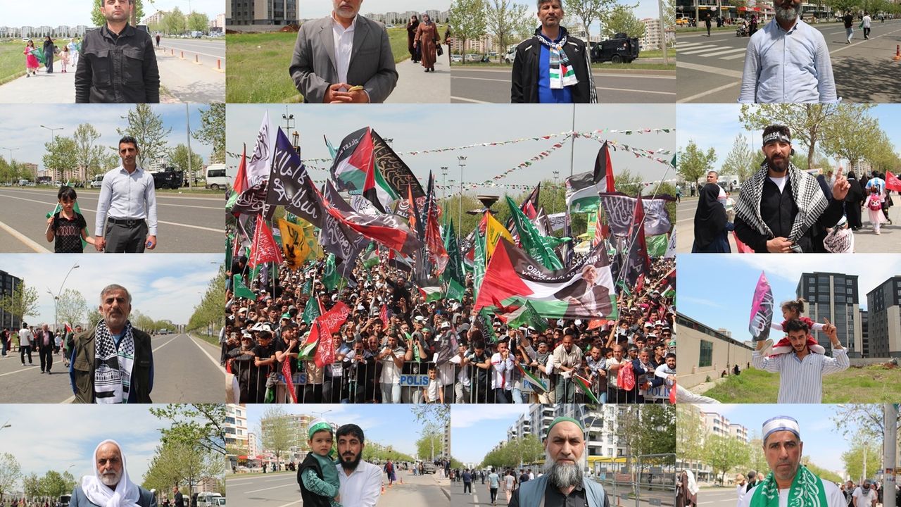 Cuma Ali Yeşil "Ergani’den buraya, Peygamber Efendimiz Sallallahu Aleyhi Vesellem'in kutlu doğum etkinliğine katılmak için geldik. Bu sene Filistin ve Gazze’de yaşanan katliamlar ve yıkımlardan dolayı biraz üzüntülüyüz. Dünyaya barış, kardeşlik, huzur ve güven gelmesini istiyoruz. İnancımız ve duamız da budur." dedi.