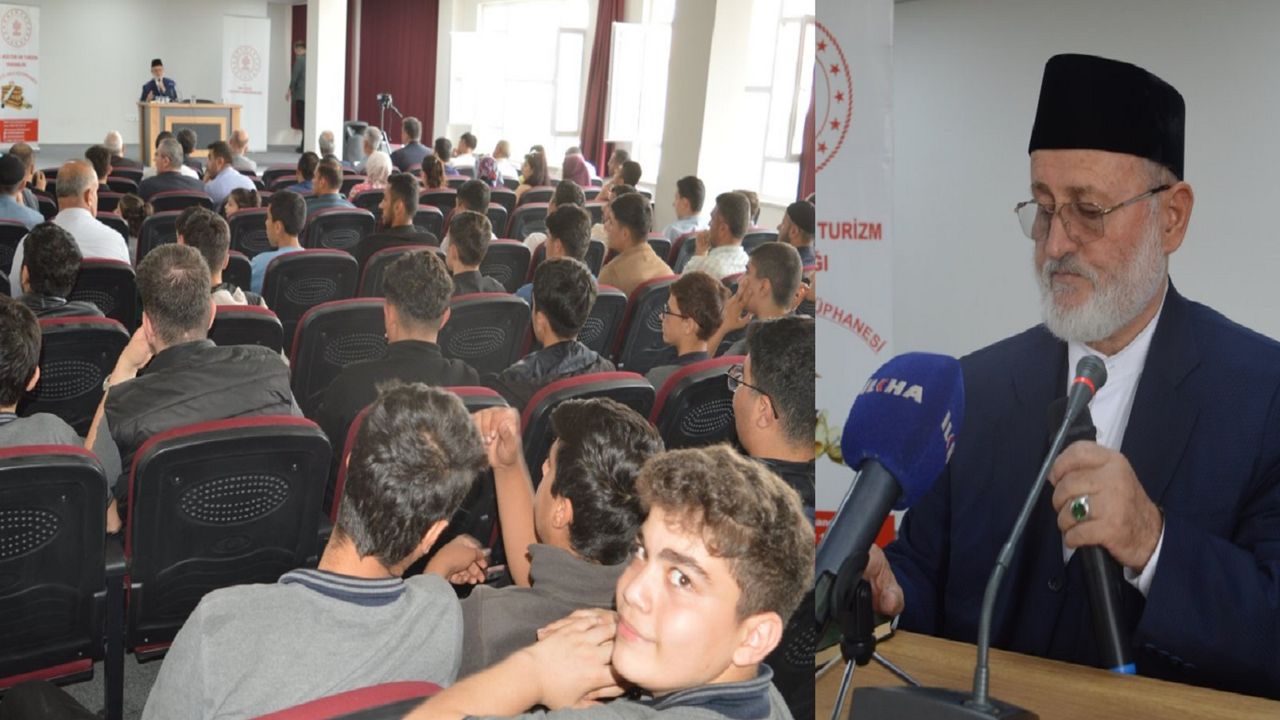 Prof. Dr. Fadıl Geylani’nin sohbetine katılan Anadolu İmam Hatip Lisesi öğrencileri, konuşmanın ardından Geylani’ye sorular yöneltti. (İLKHA)