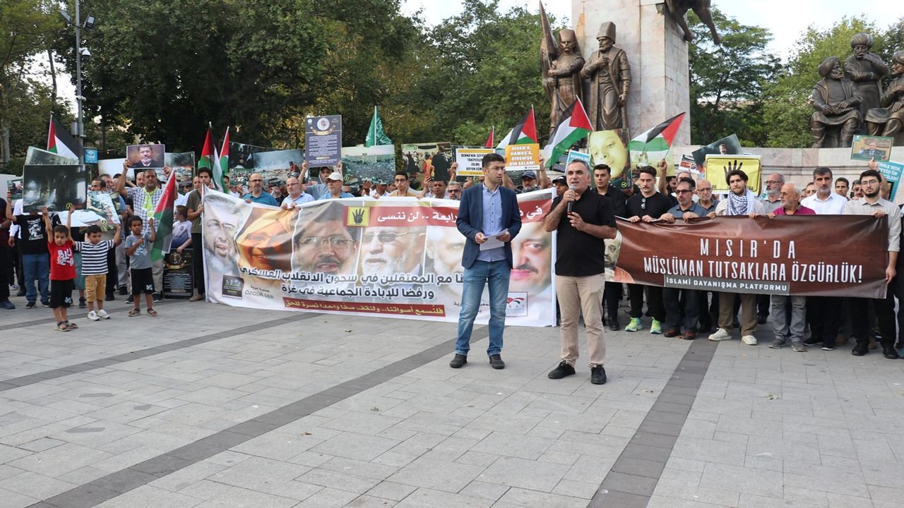 Şeyh Hüseyin'in Kur'an-ı Kerim tilaveti ile başlayan programda konuşan Gazetesi Kenan Alpay, "Mısır'ın seçilmiş cumhurbaşkanına yapılan darbeyi protesto etmek için toplanan binlerce kişinin askerler ve istihbaratçılar tarafından katledildi. Sistematik bir cinayet, bir katliam yaşandı. Meydanlarda toplanan, Mısır halkının iradesini temsil eden bir halk, ordunun başında olan general Sisi tarafından ezildiler, kolları-bacakları koparıldı ve geri kalan 70 bin insan cezaevlerine atıldı. Cezaevlerine atılanlara 'vatana ihanet' suçu isnat edildi. Öyle ki, Mısır tarihinde seçilmiş tek cumhurbaşkanı Muhammed Mursi, cezaevinde hayatını kaybetti, inşallah şehit oldu. Bugün bu durumda İhvan-ı Müslimin'in genel mürşidi Muhammed Bedi ve liderlerden Muhammed Biltaci, cezaevlerinde türlü işkencelere maruz kalmakta, en temel sağlık ve tedavi ihtiyaçlarından mahrum bırakılmaktadır. Aileleriyle görüştürülmeyen, ilaçlarını alamayan insanlar, ölümle burun buruna gelmektedir. Maalesef Gazze'deki soykırımın boş gözlerle takip edilmesi gibi Mısır'da yaşananlar da boş gözle takip edilmektedir. Buradan dünya kamuoyuna seslenerek, darbeye maruz kalan, hakları çiğnenen kardeşlerimin yanında olduğumuzu ifade ediyoruz. Tekraren söylüyoruz ki, Sisi israilin işbirlikçisi bir despottur." dedi.