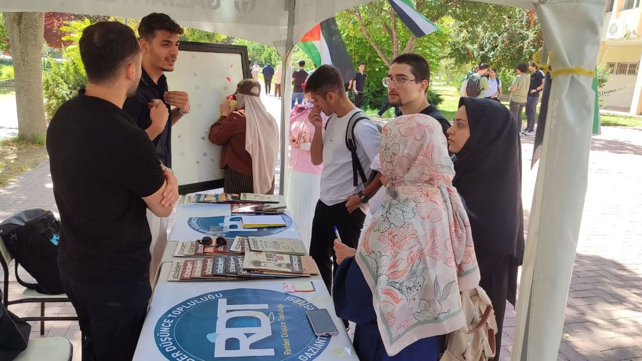 Öğrencilerin yoğun ilgi gösterdiği stantta, topluluk üyeleri hem bilgilendirme yaptı hem de Filistin halkına yönelik dayanışma çağrısında bulundu.