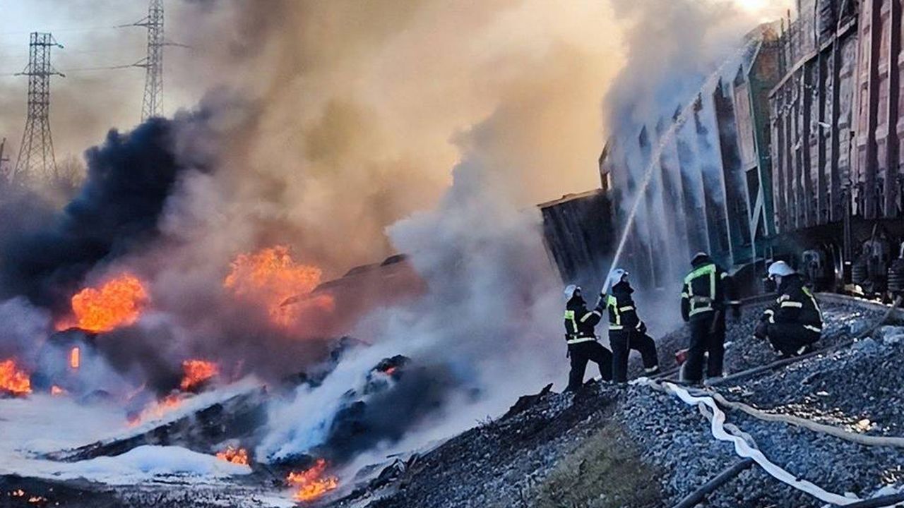 Rusya Acil Durumlar Bakanlığı, yangına müdahale için 10 itfaiye aracı ile birlikte özel ekipmanlarla donatılmış bir yangın söndürme treni sevk etti. (İLKHA)