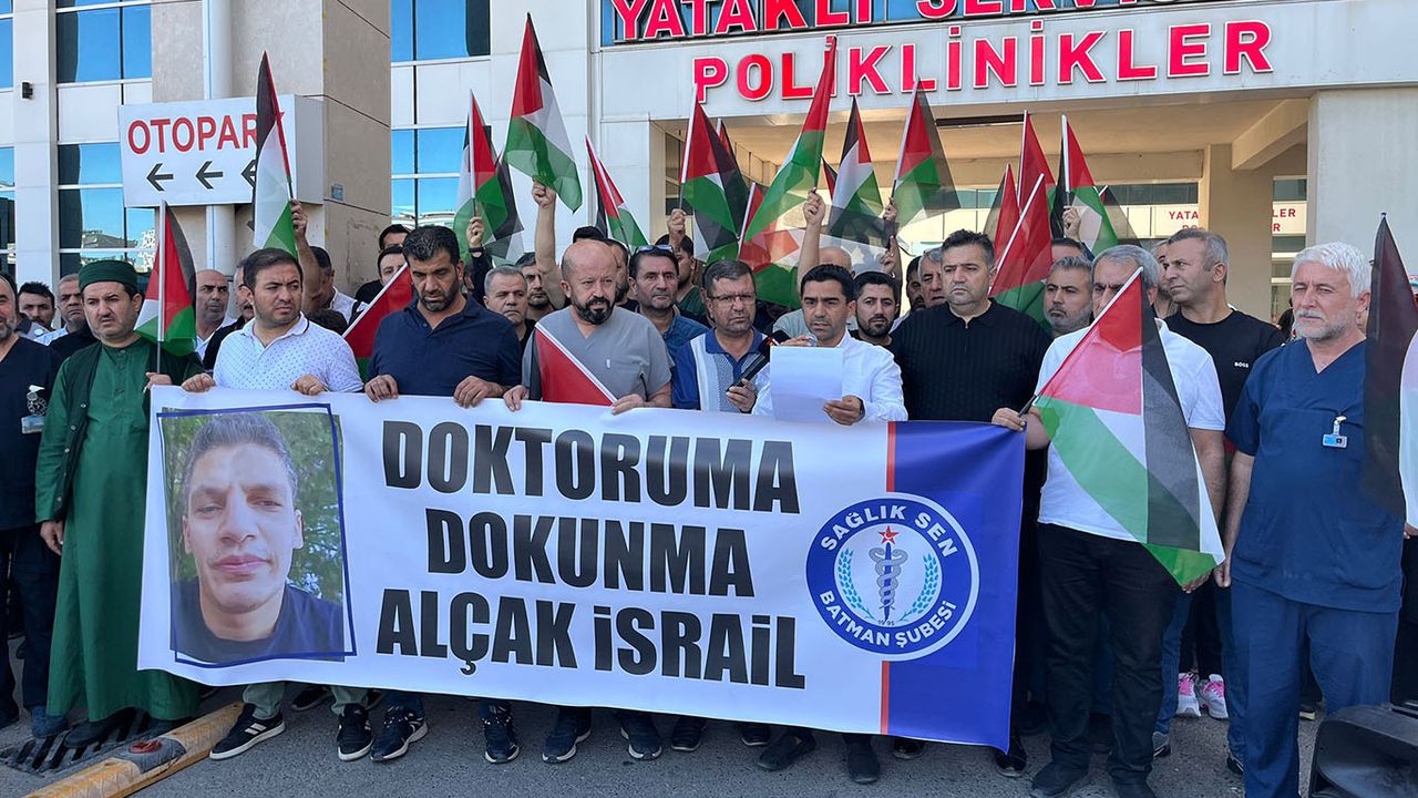 Şube adına basın açıklamasını okuyan Sağlık-Sen Batman Şube Başkanı İbrahim Halil Dursun, uluslararası sularda barışçıl bir şekilde ilerleyen filonun siyonist işgal rejiminin saldırısına uğradığını belirterek, "Hemşerimiz, meslektaşımız ve mesai arkadaşımız Doktor Abdulaziz Yalçın ile birlikte 201 aktivist gözaltına alınmıştır." dedi.