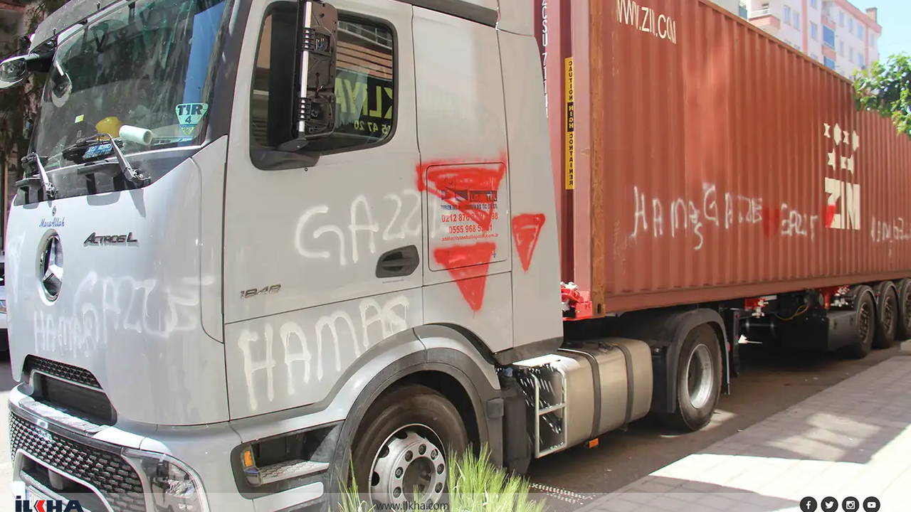 Akyazı'nın Pazarköy Caddesi'nde park halinde bulunan işgal rejmine ait ZIM firmasına ait tırın üzerine Filistin destekçisi bir grup genç tarafından "kahrolsun terörist israil" yazıldı. Yapılan eylem video kaydına alınarak sosyal medyada paylaşıldı. (İLKHA)