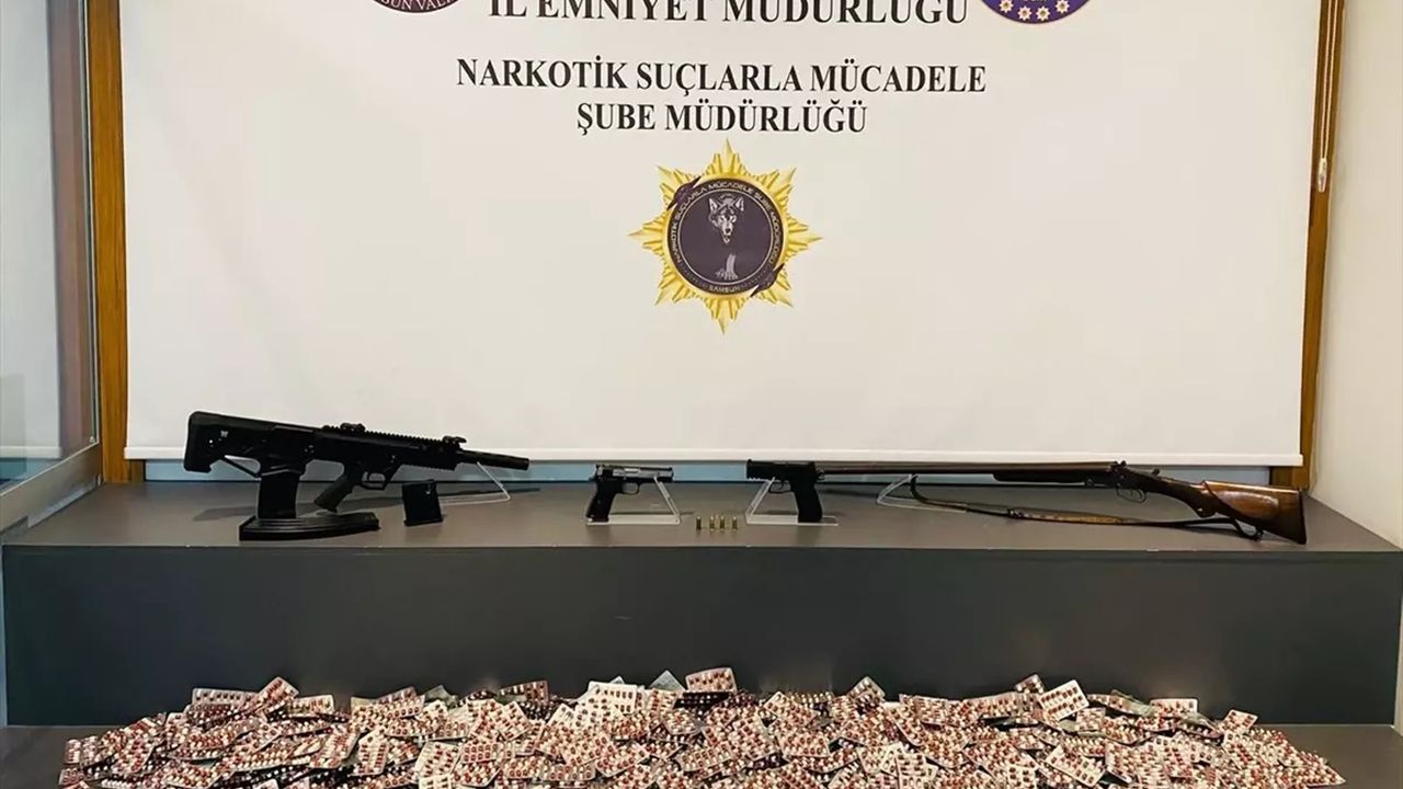 İl Emniyet Müdürlüğü Narkotik Suçlarla Mücadele Şubesi ekiplerince, Atakum ilçesinde belirlenen adreslerde yapılan aramada 10 bin 192 sentetik ecza hapı, 2 ruhsatsız tabanca ile 2 ruhsatsız tüfek ele geçirildi.
