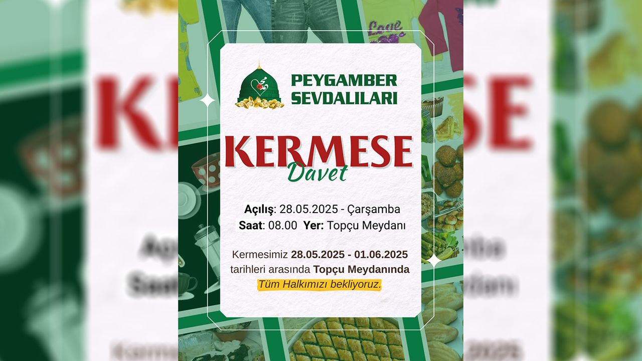 Peygamber Sevdalıları Derneği yetkilileri, tüm halkı kermese katılarak hem dayanışmaya katkı sunmaya hem de güzel bir ortamda vakit geçirmeye davet etti. (İLKHA)