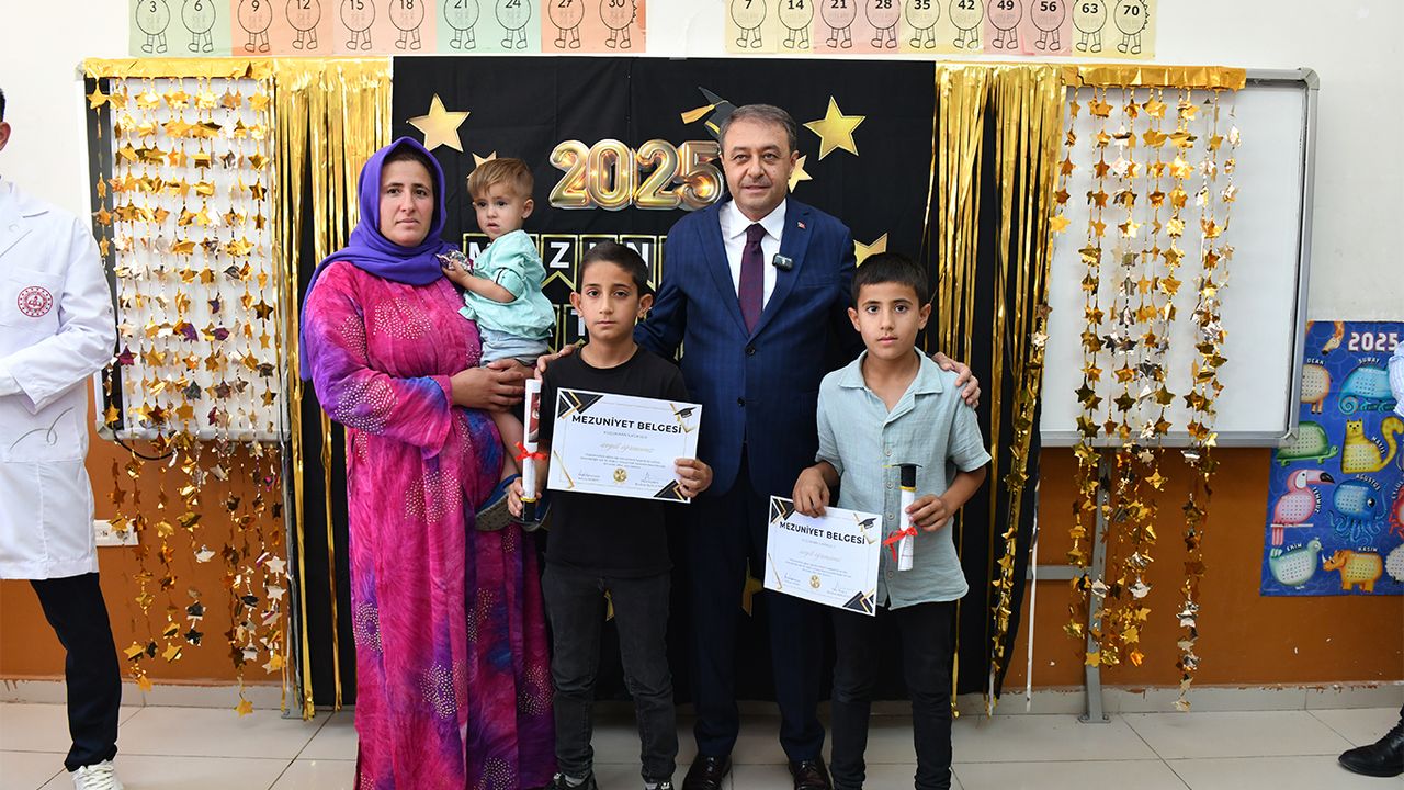 Eyyübiye ilçesindeki Küçükhan İlkokulu'nda düzenlenen karne törenine Şanlıurfa Valisi Hasan Şıldak, İl Jandarma Komutanı Tuğgeneral Mücahit Avkıran ve İl Milli Eğitim Müdürü Asım Sultanoğlu katıldı.
