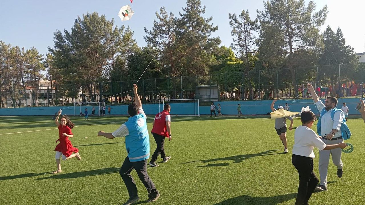 Çocuklar, özgürlük ve dayanışma sembolü olan bu uçurtmalarla hem oyun oynadı hem de anlamlı bir mesaj verdi.