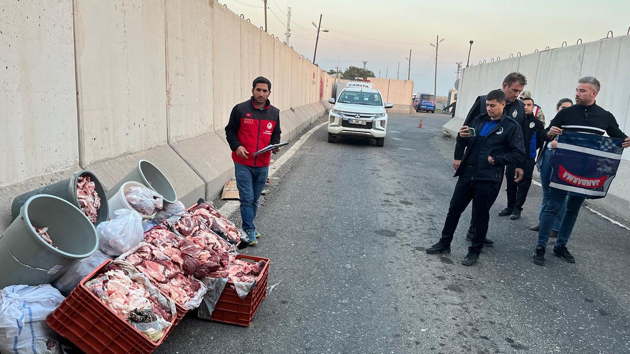 Denetimde ele geçirilen yaklaşık 1 ton kaçak et, imha edilmek üzere zabıta ekiplerine teslim edildi.