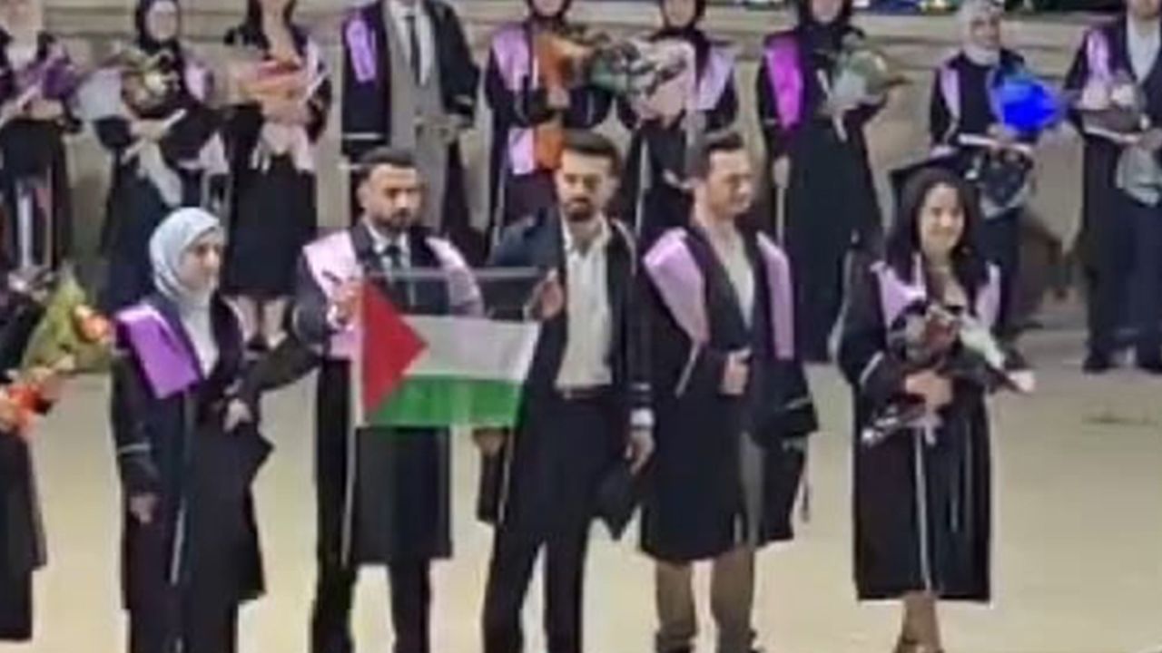Aynı zamanda Harran Üniversitesi Erdemli Gençlik Kulübü üyesi olan Doyar, sahneye Filistin bayrağıyla çıkarak salondaki katılımcılara anlamlı bir mesaj verdi.