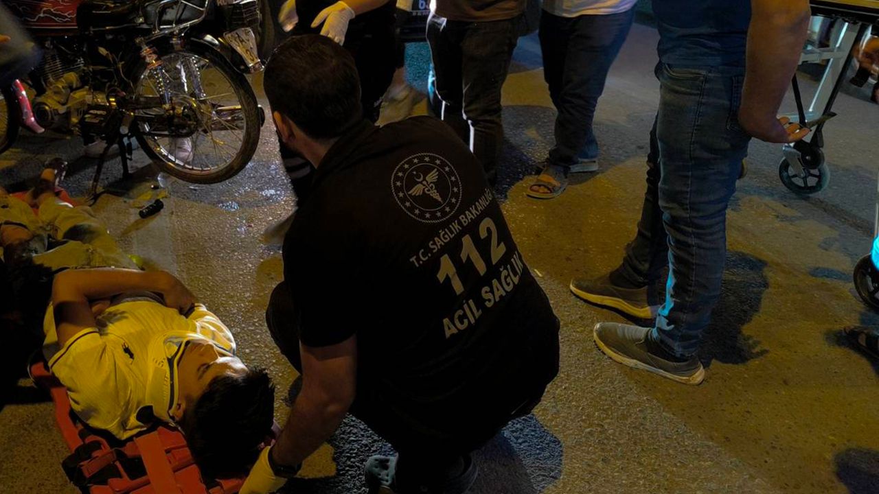 Çarpmanın etkisiyle motosiklette bulunan 2 genç, yola savrularak yaralandı.