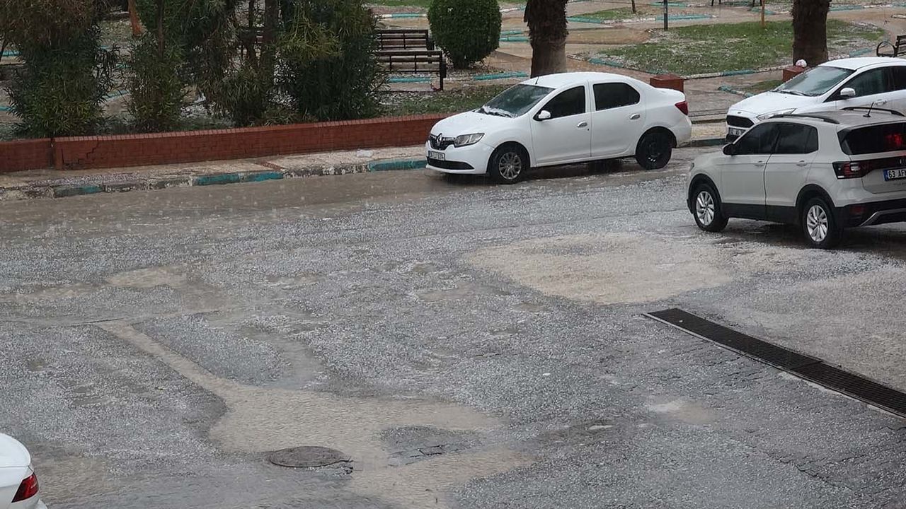 Şanlıurfa’da etkisini sürdüren yağışlı hava, kent merkezinde bazı bölgelerde doluya dönüştü.