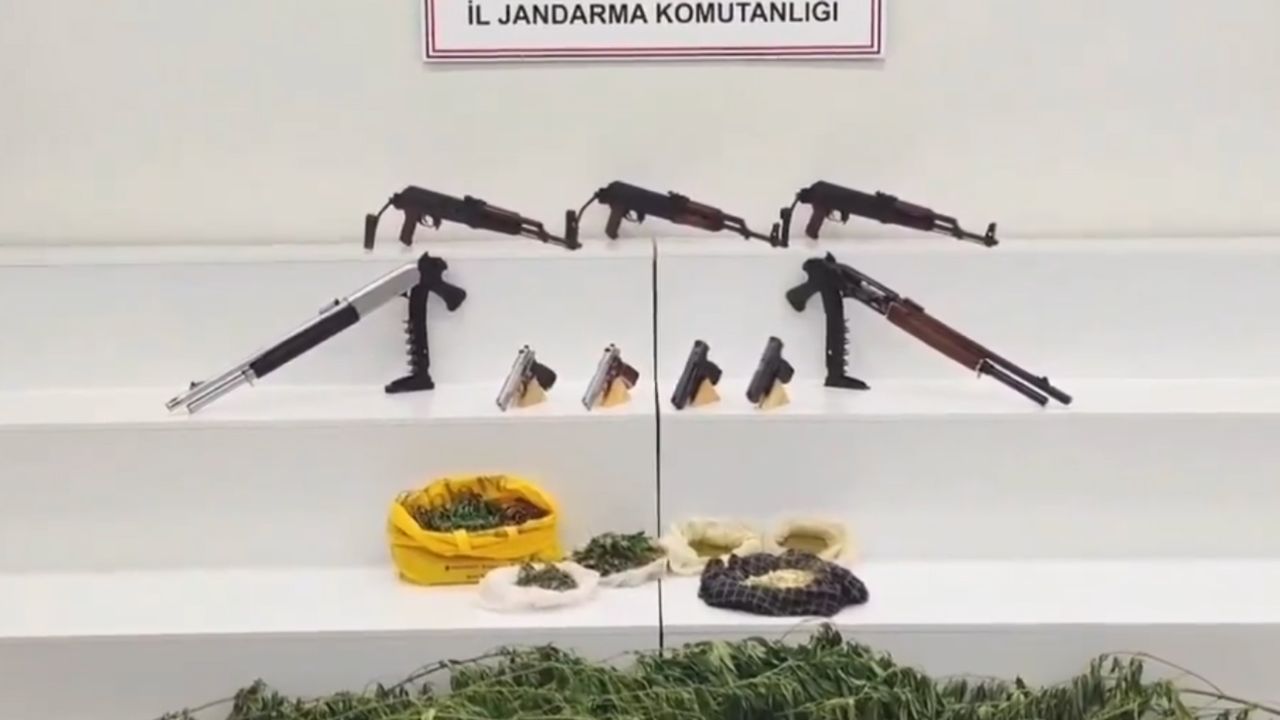 Viranşehir’de jandarma ekiplerince yapılan çalışmalarda tespit edilen 3 farklı adrese düzenlenen operasyonlarda, 3 adet kalaşnikof piyade tüfeği, 4 adet ruhsatsız tabanca, 2 adet ruhsatsız av tüfeği, 1 kilo kubar esrar, 9 kök kenevir, 197 gram toz esrar, 4 gram metamfetamin, çeşitli silahlara ait 10 şarjör ile 424 adet farklı çap ve ebatlarda fişek ele geçirildi.
