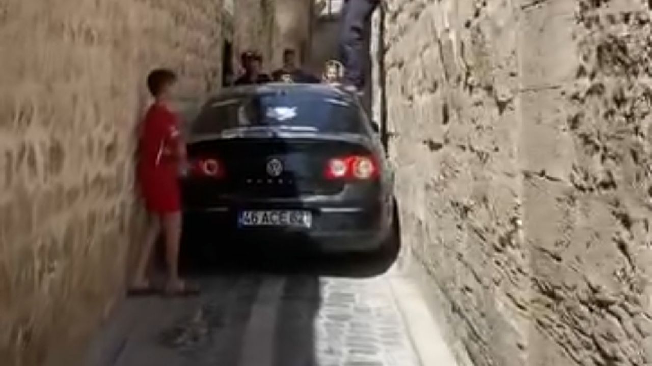 Edinilen bilgilere göre, şehir dışından geldiği öğrenilen bir vatandaş, özel aracıyla kent merkezine doğru ilerlediği sırada yol tarifini navigasyon uygulaması üzerinden aldı. Uygulama tarafından Pınarbaşı Mahallesi’ndeki dar bir sokağa yönlendirilen sürücü, sokakta ilerlemeye çalışırken aracın her iki yanını duvarlara dayadı.