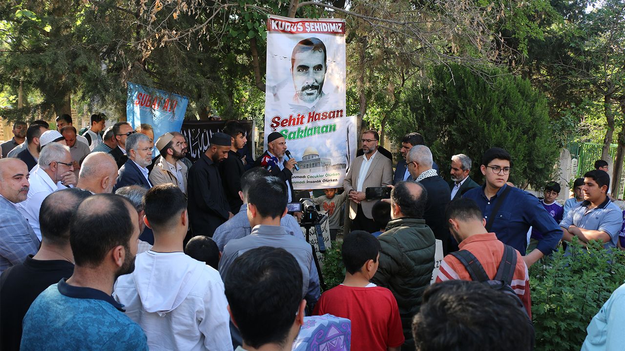 Harran Kapı Mezarlığı'nda Kur'an-ı Kerim tilaveti ve dualar eşliğinde devam eden programda, Hasan Saklanan'ın Kudüs davasına olan bağlılığı vurgulandı.