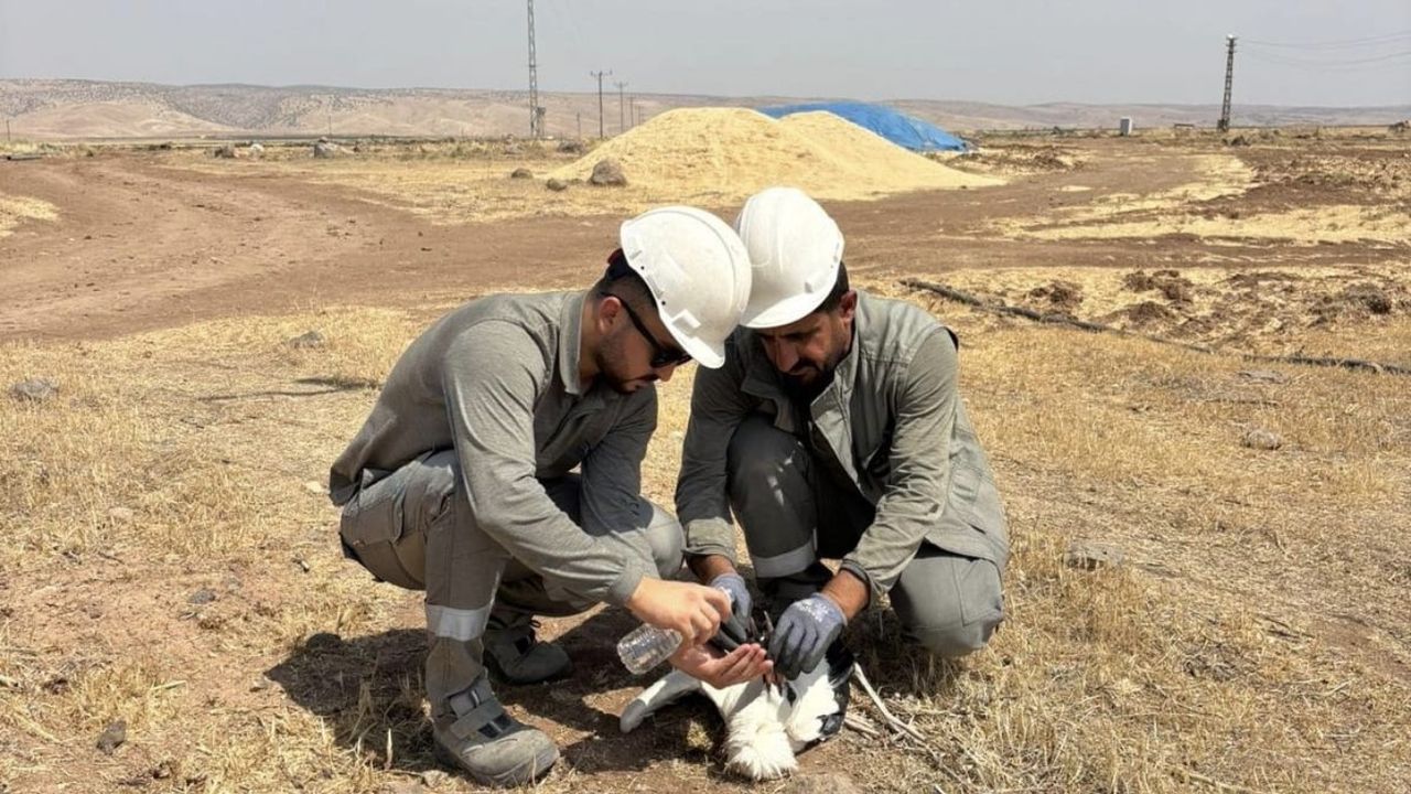 Bölgede yaşanan bir arızayı gidermek üzere sahada çalışan elektrik ekipleri, yerde hareketsiz duran bir leylek fark etti.