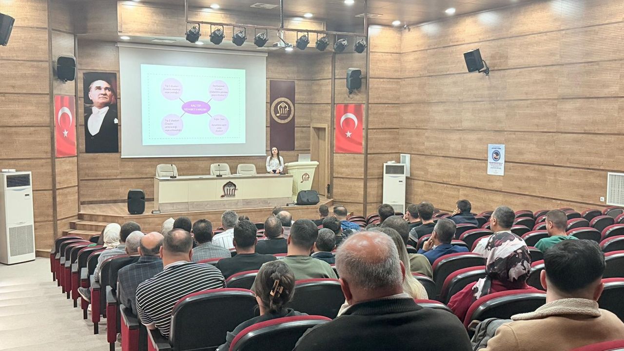 Valilik personeline yönelik gerçekleştirilen eğitimde, Diyetisyen Ayşegül Bilim tarafından diyabetin tanımı, oluşum süreci, risk faktörleri, erken tanının önemi ve diyabetten korunma yolları hakkında detaylı bilgiler paylaşıldı.