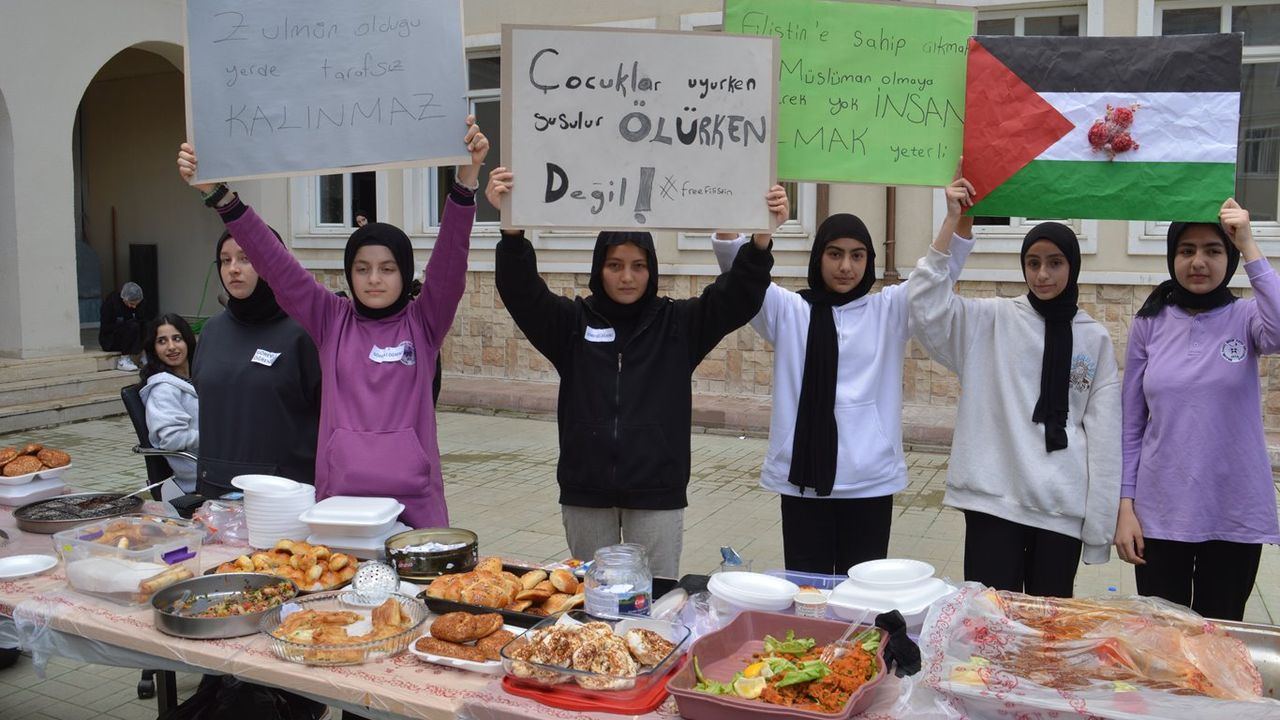 Siirt’te İbrahim Hakkı Kız Anadolu İmam Hatip Lisesi öğrencileri, siyonist rejimin Filistin’in Gazze kentinde gerçekleştirdiği saldırılara dikkat çekmek ve destek sağlamak amacıyla yardım kermesi düzenledi. Öğrenciler tarafından hazırlanan etkinlikte, yiyecek ve el emeği ürünlerin satışının yanı sıra, Gazze’de yaşanan insanlık dramını gözler önüne seren bir resim sergisi ve Kudüs temalı maketler de yer aldı.