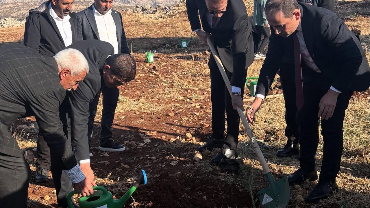 Güçlükonak Kaymakamı Semih Memiş ve beraberindekiler ile birlikte fidan dikerek, diktiği fidanı suladı. (İLKHA)