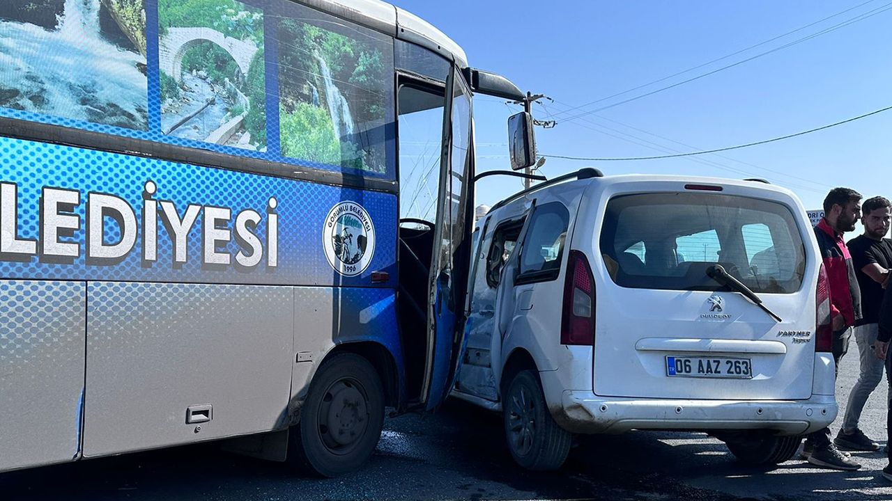 Edinilen bilgilere göre, Görümlü Belediyesine ait toplu taşıma aracı ile hafif ticari bir kamyonet kavşak üzerinde henüz belirlenemeyen bir nedenle çarpıştı.