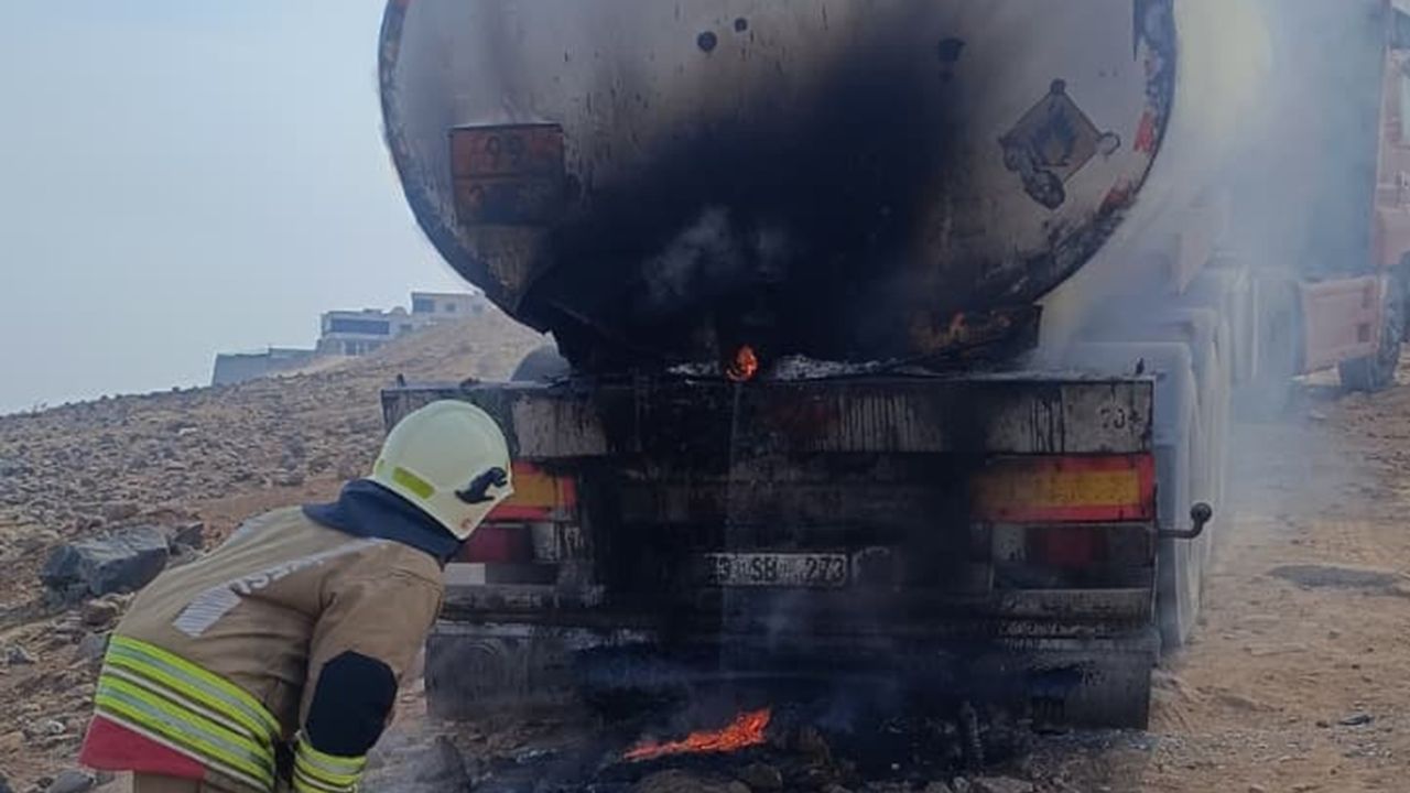 Edinilen bilgilere göre, park halindeki 73 SB 273 plakalı akaryakıt tankeri henüz belirlenemeyen bir nedenle alev almaya başladı.