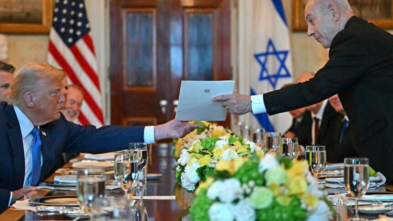 Netenyahu, Washington'a yaptığı ziyaret sırasında Trump'a hitaben hazırladığı Nobel adaylık mektubunu Beyaz Saray'daki yemekte kendisine sundu.