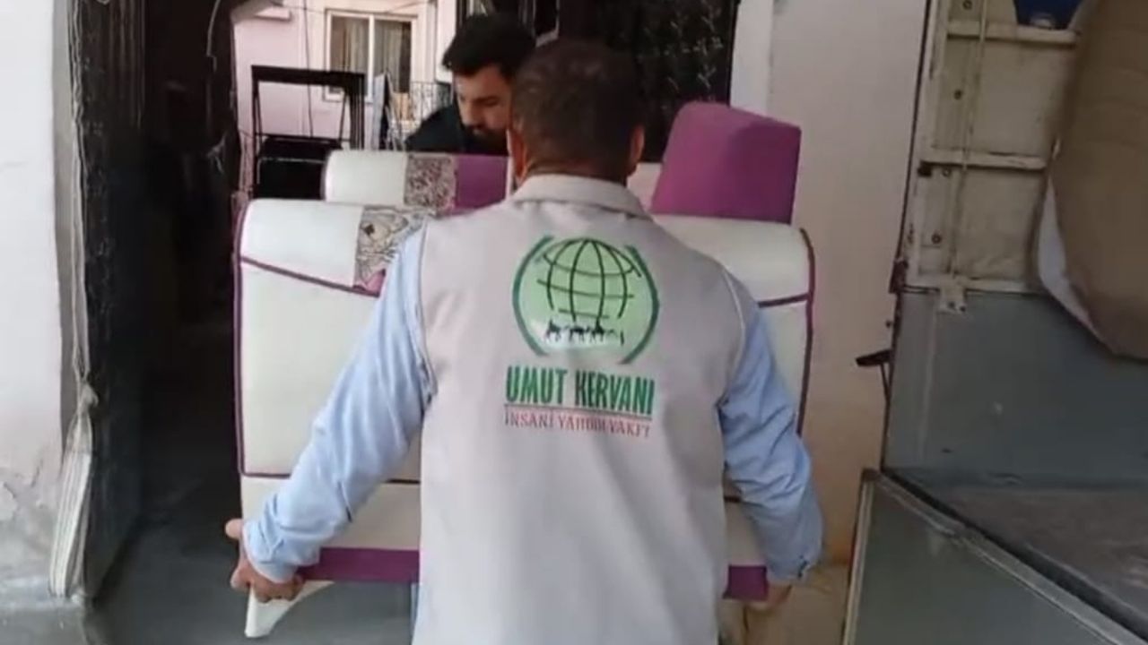 Yardım faaliyetleri kapsamında ayrıca, eşi vefat etmiş, mağdur ve geçim sıkıntısı yaşayan Suriyeli bir aileye çeşitli ev eşyaları yardımında bulunuldu.
