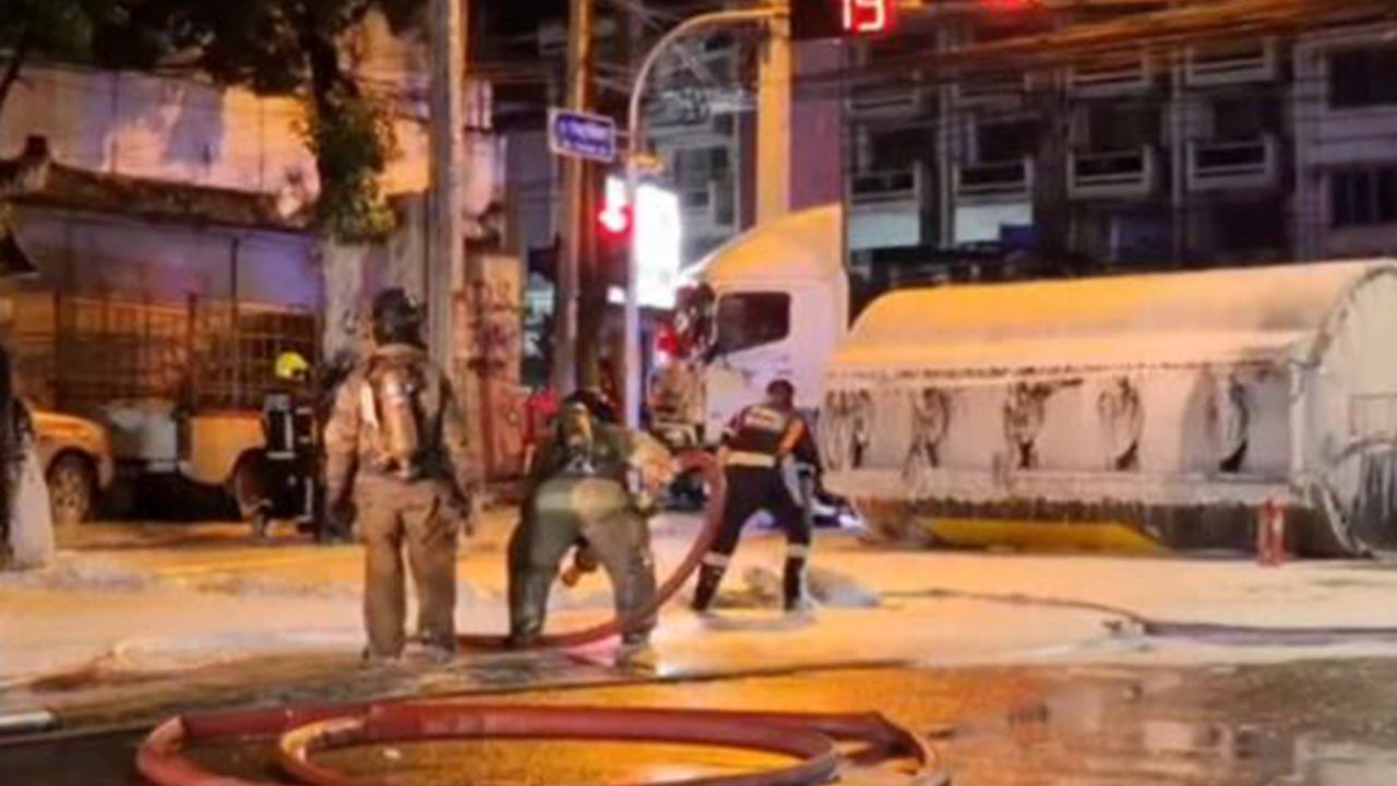 Başkent Bangkok'un Rat Burana ilçesinde, çok sayıda ev ve işyerinin bulunduğu bir sokakta, konteyner yüklü bir tır ile akaryakıt tankeri çarpıştı.