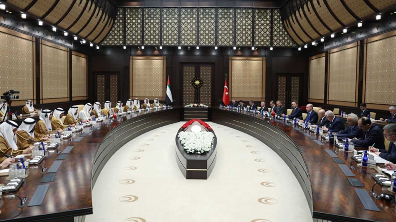 Cumhurbaşkanı Erdoğan, Yüksek Düzeyli Stratejik Konsey'in ilk toplantısı vesilesiyle Al Nahyan ve heyetini Ankara'da misafir etmekten memnuniyet duyduğunu belirterek, "2023 yılında Abu Dabi'ye yaptığım ziyarette değerli kardeşim Şeyh Muhammed bin Zayed ile temelini attığımız stratejik ortaklığımız hamdolsun hemen her alanda meyvelerini vermeye başladı. Ticaretten altyapıya, savunma sanayinden enerjiye, teknolojiden ulaştırmaya kadar her alanda ciddi mesafe kat ettik." dedi.