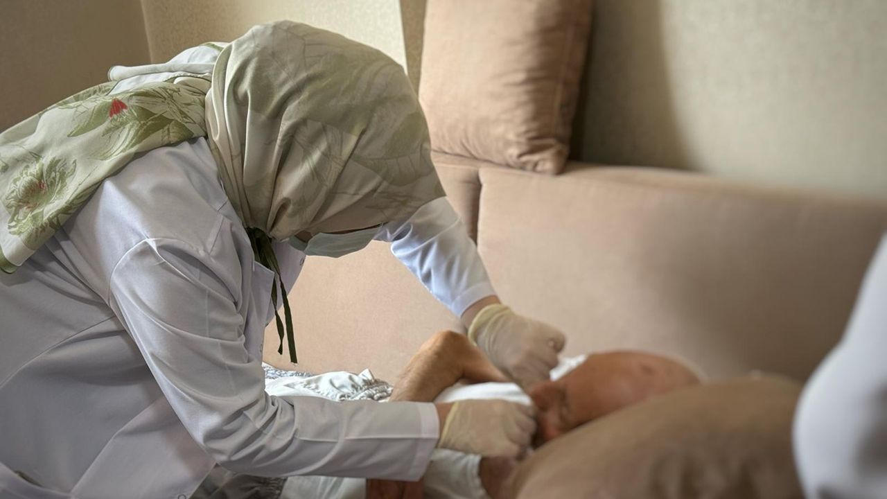 87 yaşında ve yatalak durumda olan A.E. adlı hasta, uygulama kapsamında evinde muayene edildi.