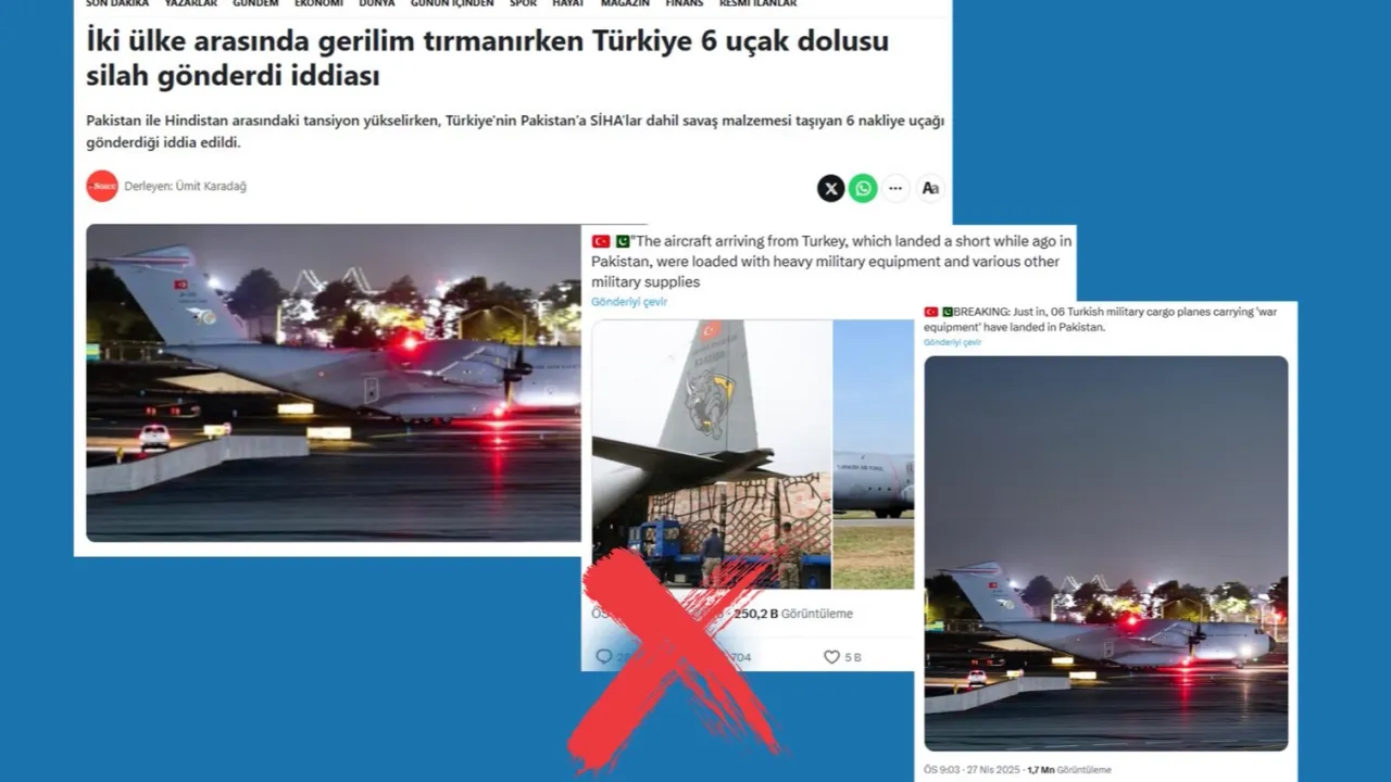 İletişim Başkanlığı bünyesindeki Dezenformasyonla Mücadele Merkezi'nden yapılan yazılı açıklamada, yetkililer, Türkiye’den kalkan bir nakliye uçağının yalnızca yakıt ikmali için Pakistan’a iniş yaptığını, ardından rotasına devam ettiğini belirtti.