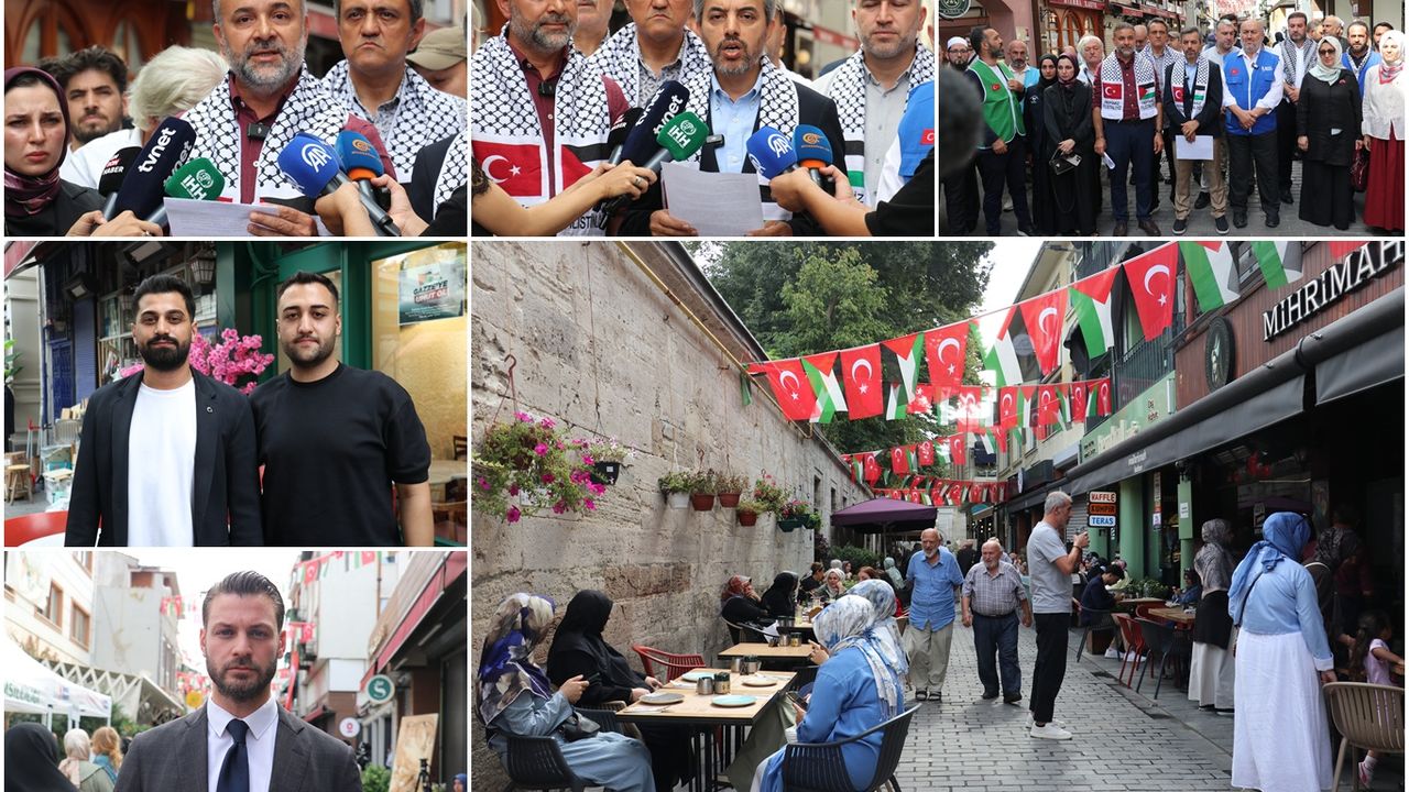 Başlatılan projeye ilişkin Türkiye ve Filistin bayrakları ile süslenen Üsküdar Gastronomi Sokağı'nda bir araya gelen STK ve esnaf temsilcileri bir basın açıklaması düzenledi.