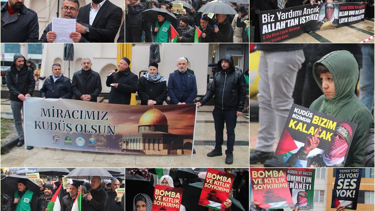 "Ümmetin ve tüm mazlum halkların özgürlüğünün yolu Kudüs’ten geçer! Kudüs ve Mescid'i Aksa davası, tüm İslam ümmetinin ortak davasıdır. Mazlum Gazze halkıyla dayanışmamızı tüm dünyaya ilan etmek ve ‘Kudüs Miracımız Olsun’ demek için meydanlardayız."