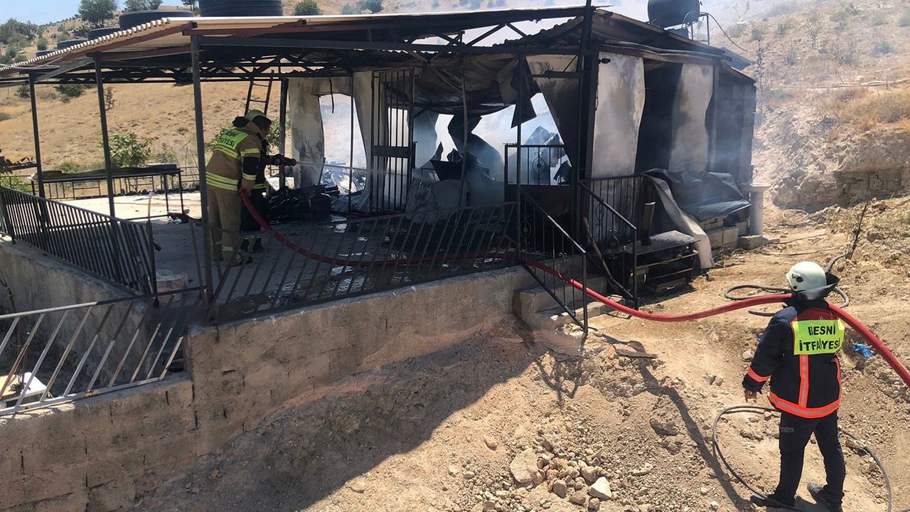 Besni Ali Erdemoğlu Mahallesi Elder mevkiinde bulunan bağ evinin yandığını fark eden vatandaşların ihbarı üzerine yangın mahalline itfaiye ekipleri sevk edildi.