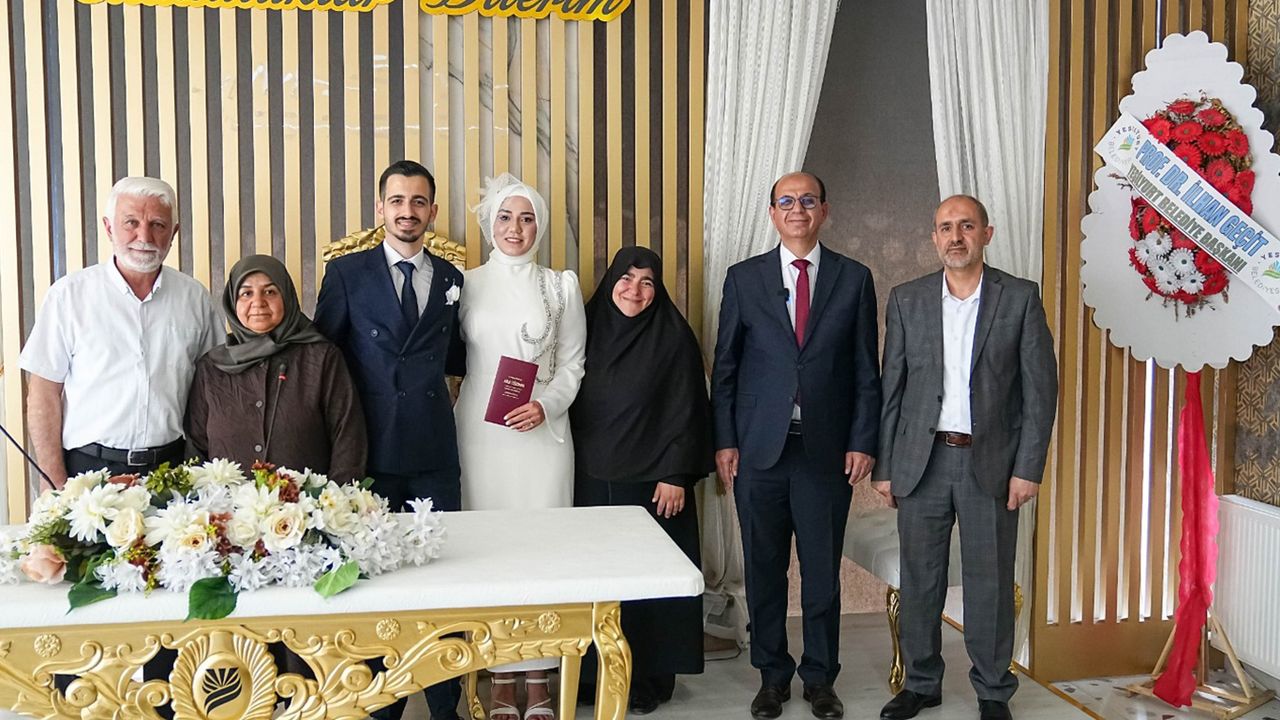 Aylar öncesinde ''05.05.2025'' tarihinde nikâh kıydırmak için başvuran çiftler, Yeşilyurt Belediyesi Evlendirme Dairesine giderek nikâh işlemlerini yaptırdılar. Nikah memuru ve şahitlerin huzurunda işlemleri tamamlanan ve evlilik cüzdanını teslim alan çiftler, sonrasında tebrikleri kabul etti.